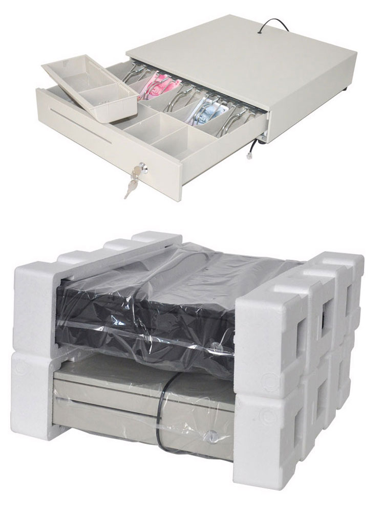錢(qián)箱一般分為兩段鎖和(hé)三段鎖,兩段鎖就是指鎖有(yǒu)兩檔一檔可(kě)以将錢(qián)箱鎖死,另外一檔時(shí)可(kě)以用脈沖将錢(qián)箱彈開(kāi),兩段鎖的錢(qián)箱不可(kě)以用鑰匙把錢(qián)箱打開(kāi);三段鎖是有(yǒu)三檔,其中兩檔與兩段鎖中的兩檔相同,多(duō)了的這一檔就是将鑰匙轉到這一檔時(shí)可(kě)以将錢(qián)箱打開(kāi)